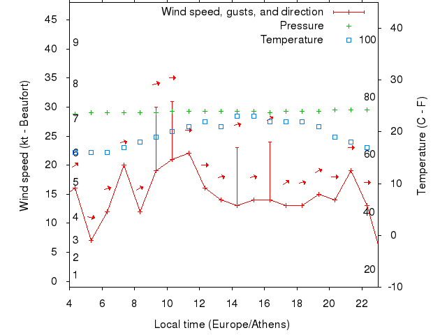 Dawn after 4:00; dusk before 23:00 local time (Europe/Athens).