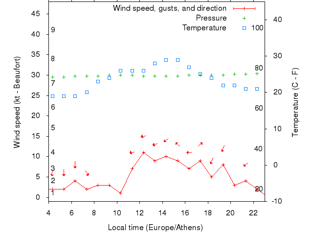 Dawn after 4:00; dusk before 23:00 local time (Europe/Athens).