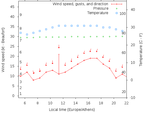 Dawn after 5:00; dusk before 22:00 local time (Europe/Athens).