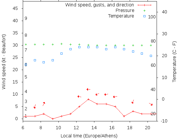 Dawn after 6:00; dusk before 21:00 local time (Europe/Athens).
