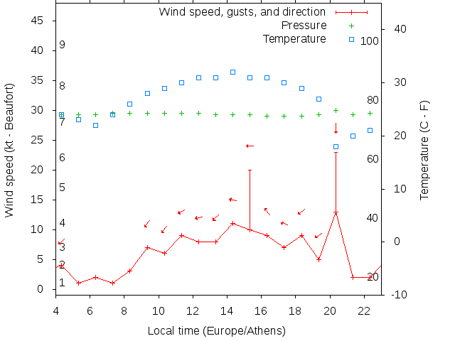 Dawn after 4:00; dusk before 23:00 local time (Europe/Athens).