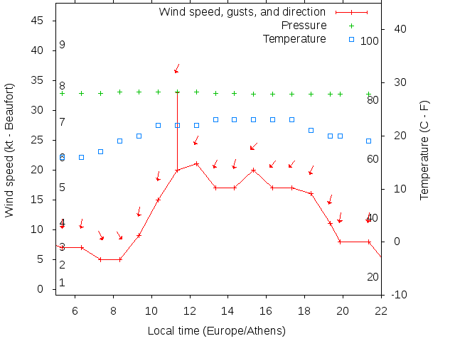 Dawn after 5:00; dusk before 22:00 local time (Europe/Athens).