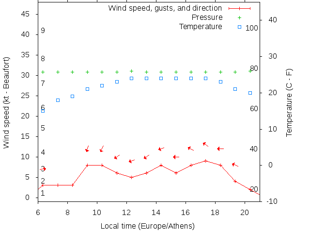 Dawn after 6:00; dusk before 21:00 local time (Europe/Athens).