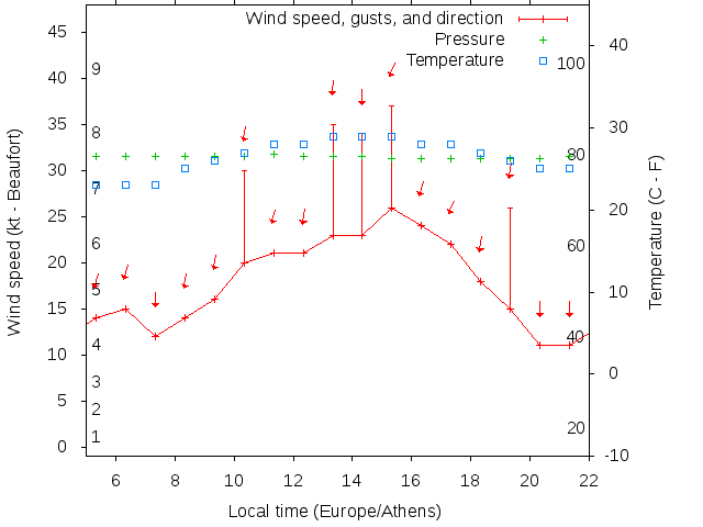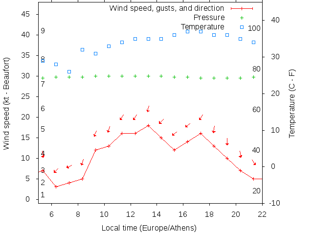 Dawn after 5:00; dusk before 22:00 local time (Europe/Athens).