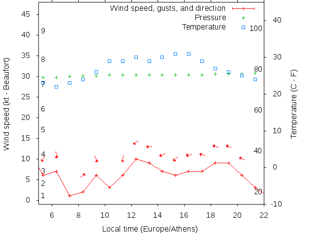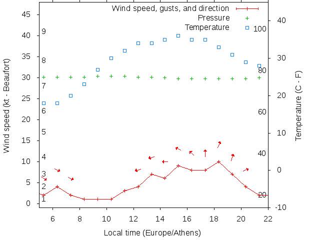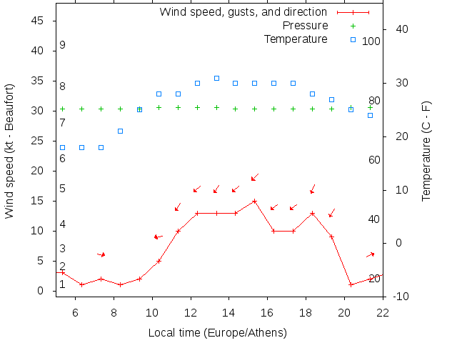 Dawn after 5:00; dusk before 22:00 local time (Europe/Athens).