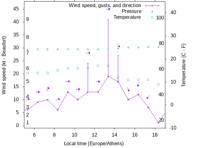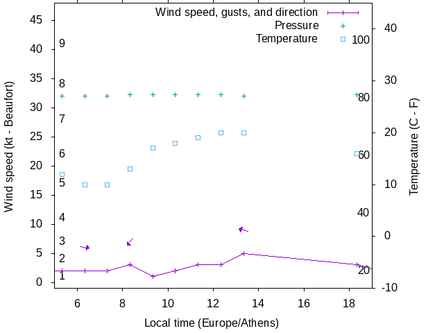 Dawn after 5:00; dusk before 19:00 local time (Europe/Athens).