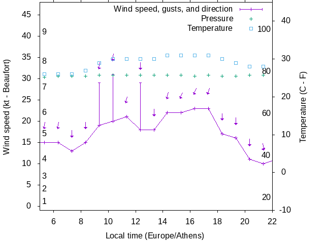 Dawn after 5:00; dusk before 22:00 local time (Europe/Athens).