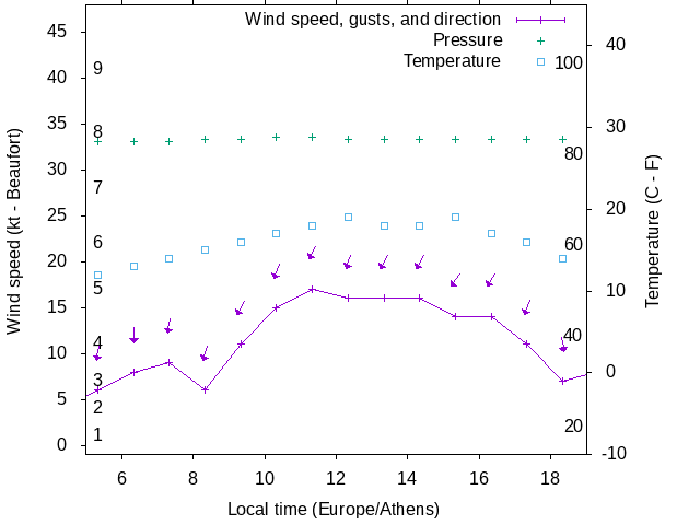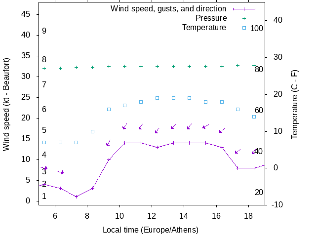 Dawn after 5:00; dusk before 19:00 local time (Europe/Athens).