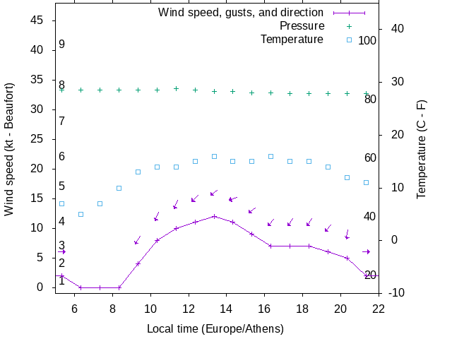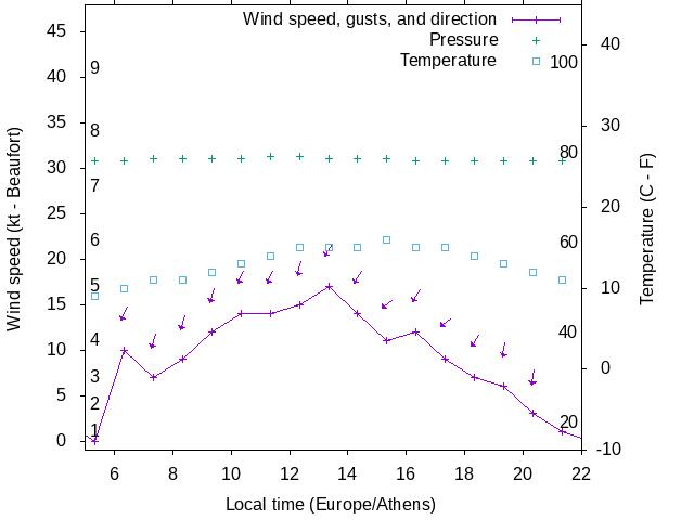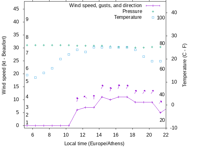 Dawn after 5:00; dusk before 22:00 local time (Europe/Athens).