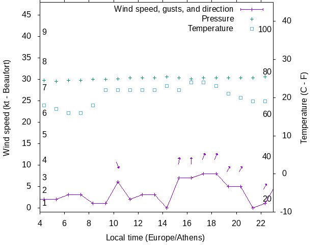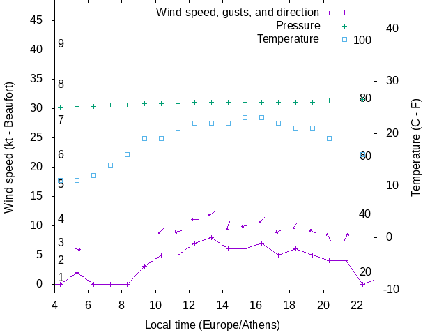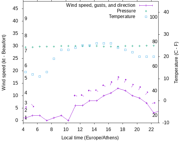 Dawn after 4:00; dusk before 23:00 local time (Europe/Athens).