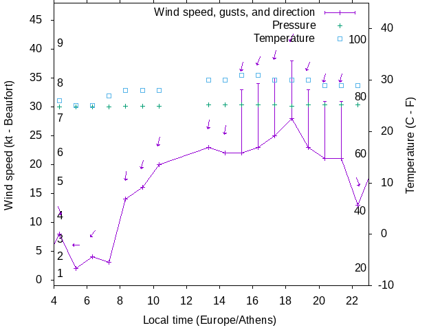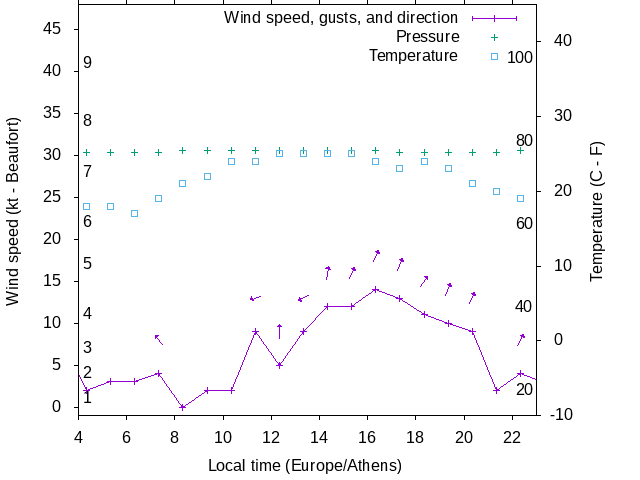 Dawn after 4:00; dusk before 23:00 local time (Europe/Athens).