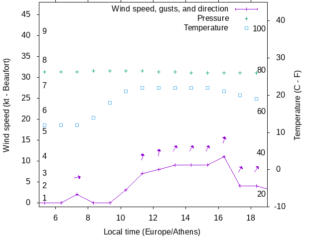 Dawn after 5:00; dusk before 19:00 local time (Europe/Athens).