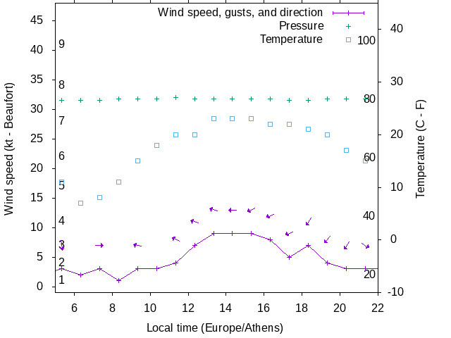 Dawn after 5:00; dusk before 22:00 local time (Europe/Athens).