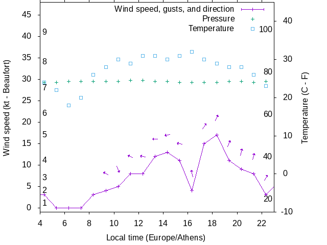 Dawn after 4:00; dusk before 23:00 local time (Europe/Athens).