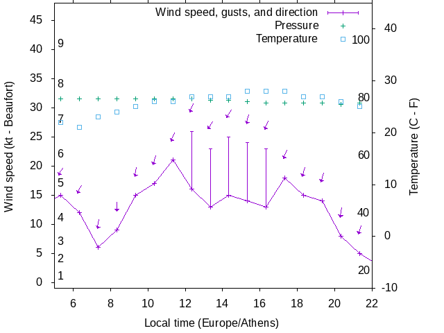 Dawn after 5:00; dusk before 22:00 local time (Europe/Athens).