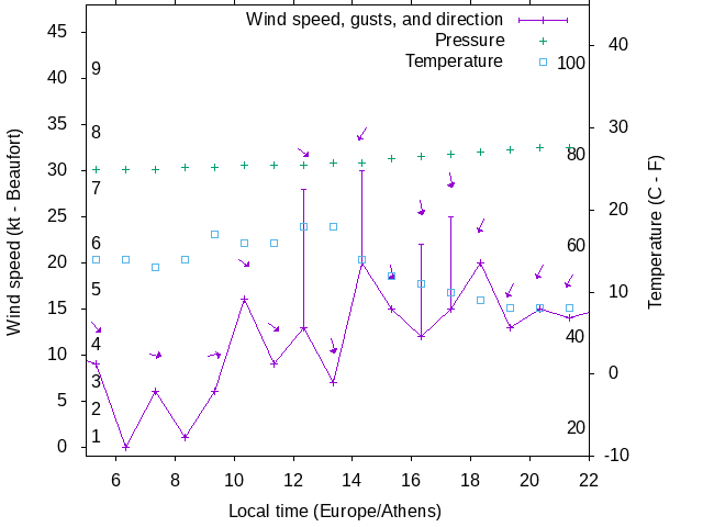 Dawn after 5:00; dusk before 22:00 local time (Europe/Athens).