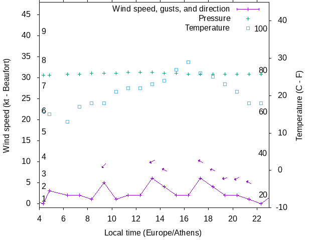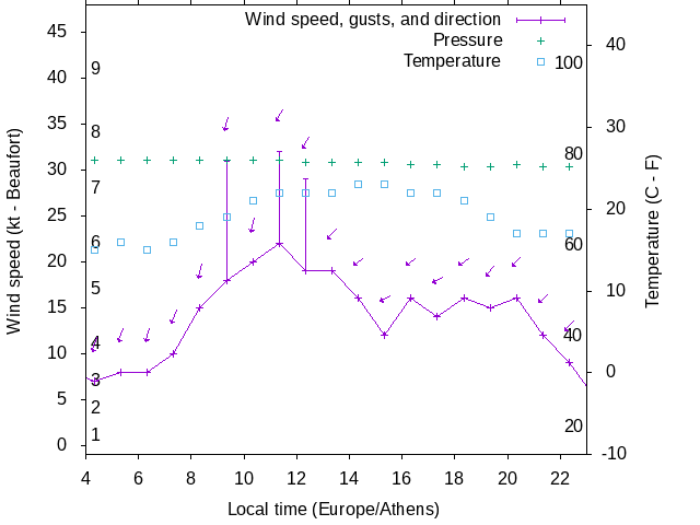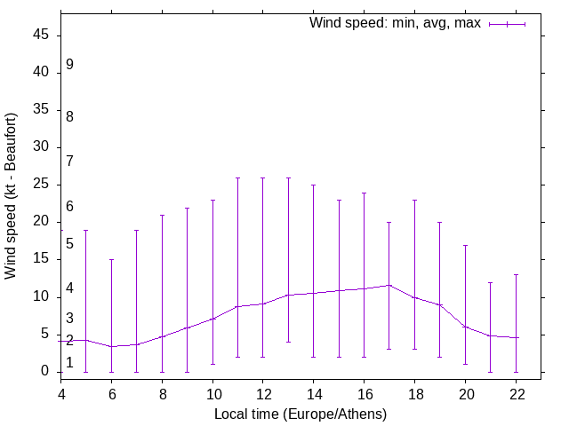 Dawn after 4:00; dusk before 23:00 local time (Europe/Athens).