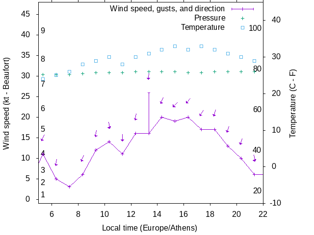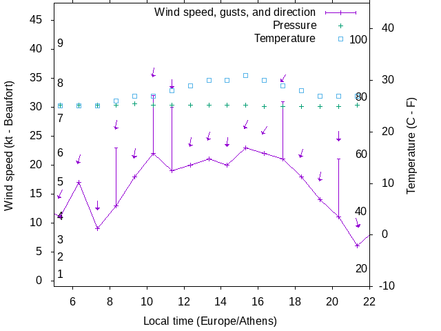 Dawn after 5:00; dusk before 22:00 local time (Europe/Athens).