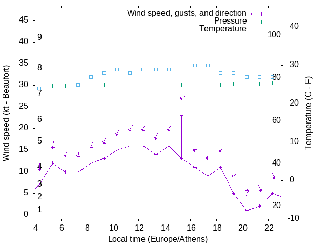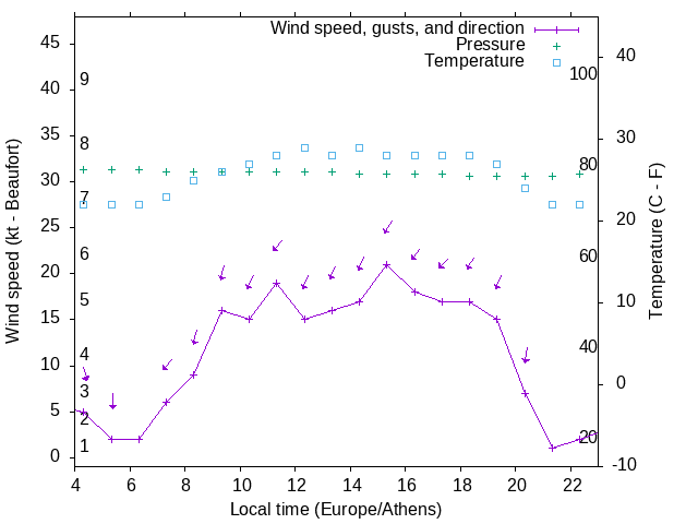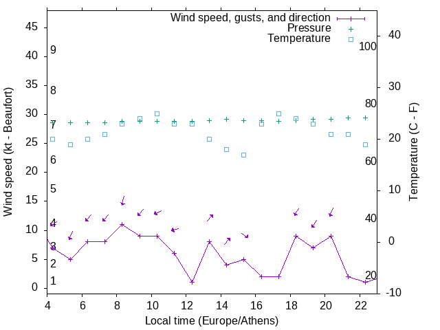 Dawn after 4:00; dusk before 23:00 local time (Europe/Athens).
