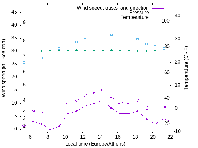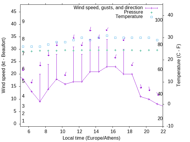 Dawn after 5:00; dusk before 22:00 local time (Europe/Athens).