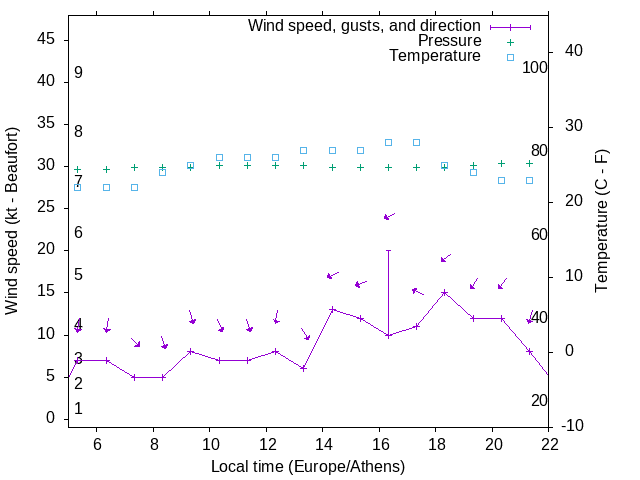 Dawn after 5:00; dusk before 22:00 local time (Europe/Athens).