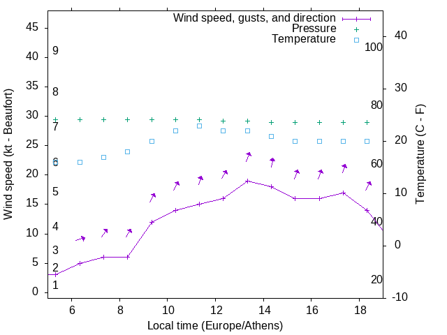 Dawn after 5:00; dusk before 19:00 local time (Europe/Athens).