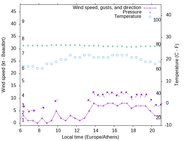 Dawn after 6:00; dusk before 21:00 local time (Europe/Athens).