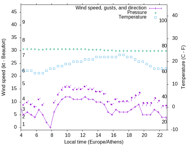 Dawn after 4:00; dusk before 23:00 local time (Europe/Athens).