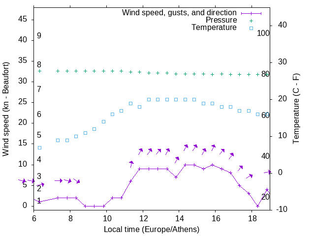 Dawn after 5:00; dusk before 19:00 local time (Europe/Athens).