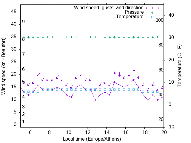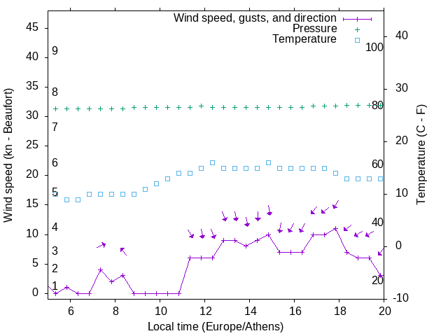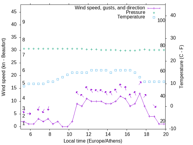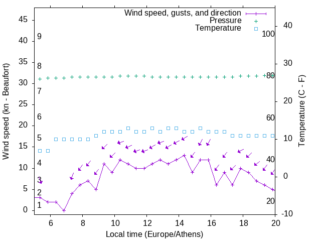 Dawn after 5:00; dusk before 20:00 local time (Europe/Athens).