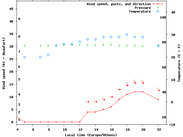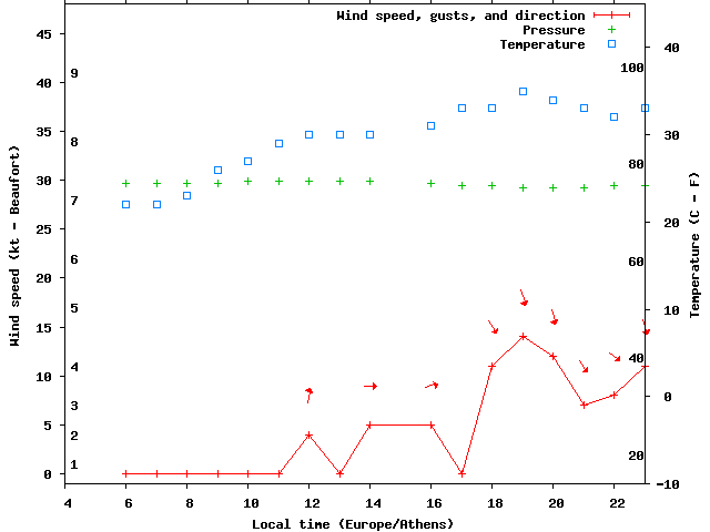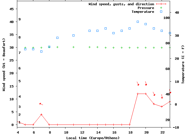 Dawn after 4:00; dusk before 23:00 local time (Europe/Athens).