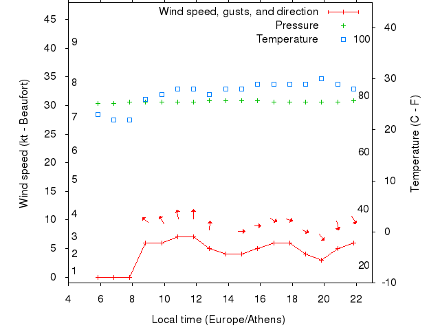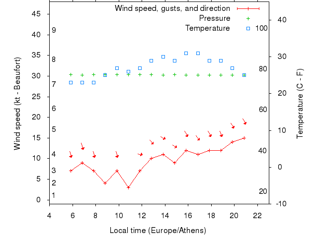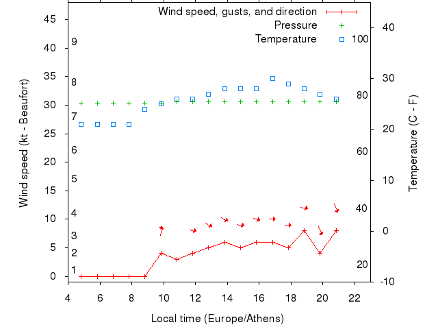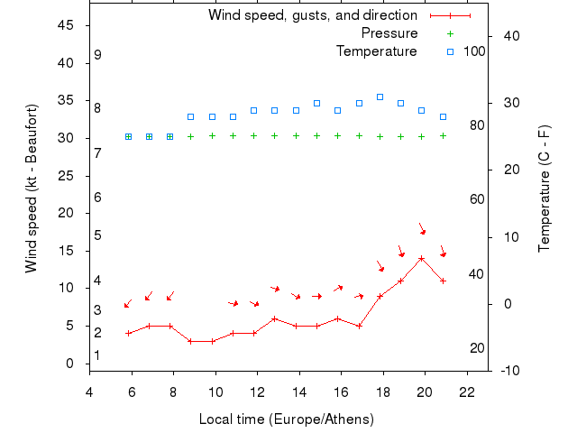 Dawn after 4:00; dusk before 23:00 local time (Europe/Athens).
