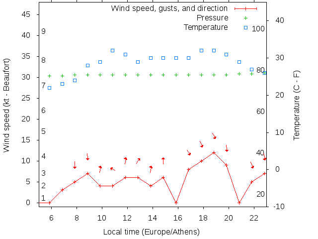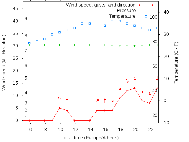 Dawn after 5:00; dusk before 23:00 local time (Europe/Athens).