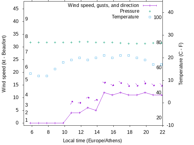 Dawn after 5:00; dusk before 22:00 local time (Europe/Athens).