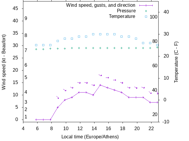 Dawn after 4:00; dusk before 23:00 local time (Europe/Athens).