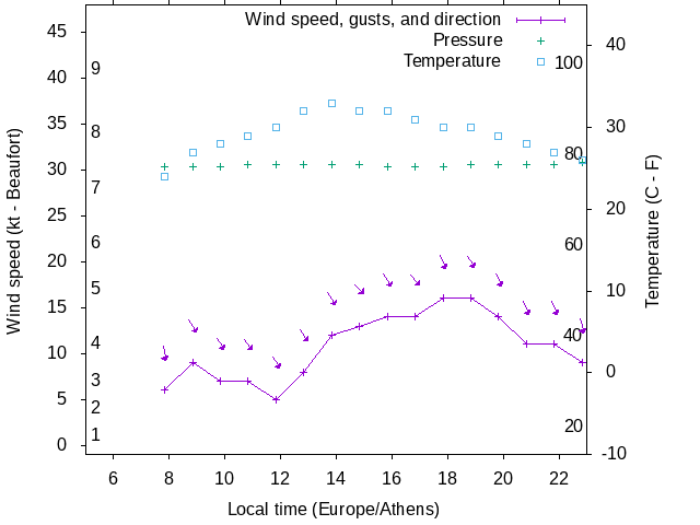 Dawn after 5:00; dusk before 23:00 local time (Europe/Athens).