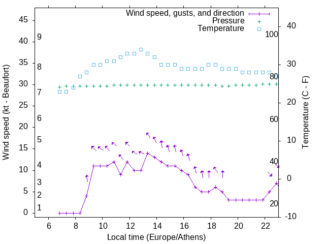 Dawn after 4:00; dusk before 23:00 local time (Europe/Athens).