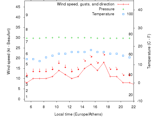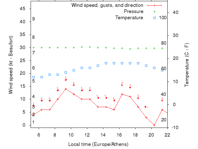 Dawn after 5:00; dusk before 22:00 local time (Europe/Athens).