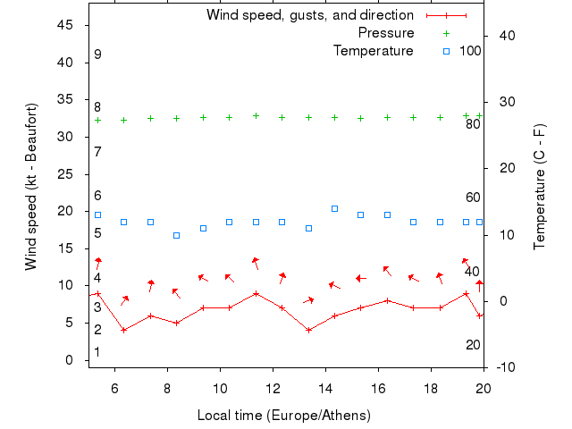 Dawn after 5:00; dusk before 20:00 local time (Europe/Athens).