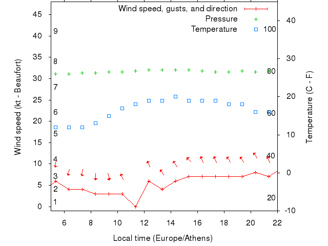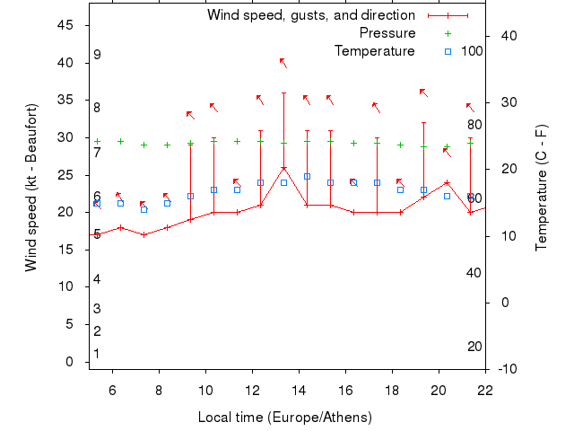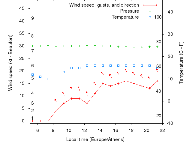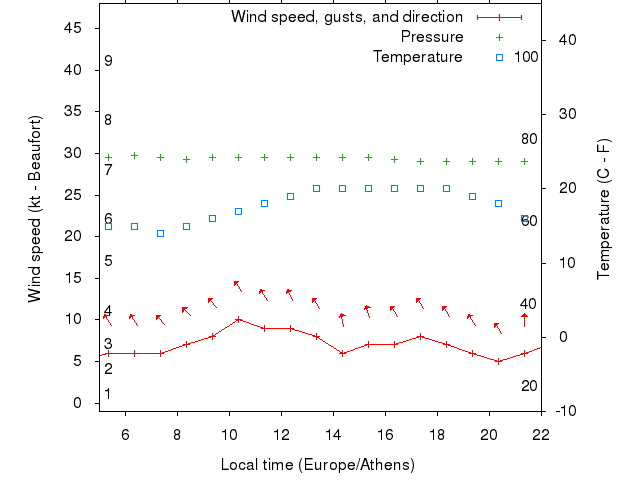 Dawn after 5:00; dusk before 22:00 local time (Europe/Athens).