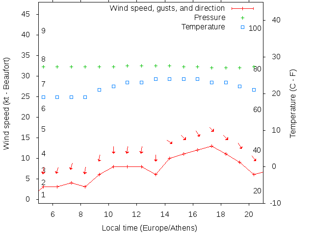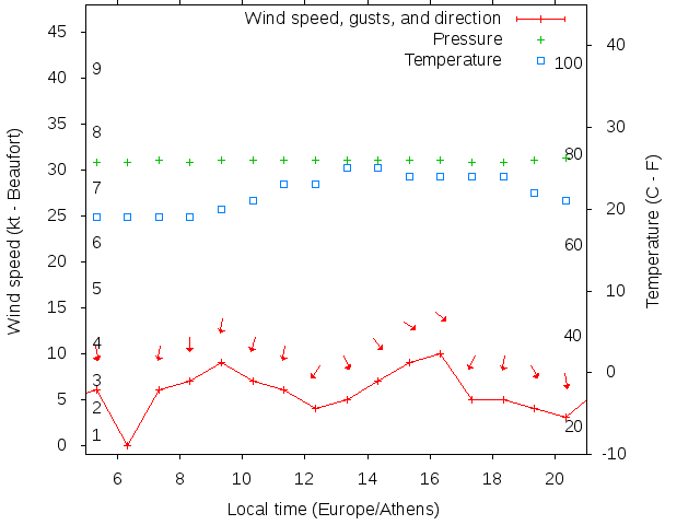 Dawn after 5:00; dusk before 21:00 local time (Europe/Athens).