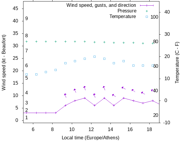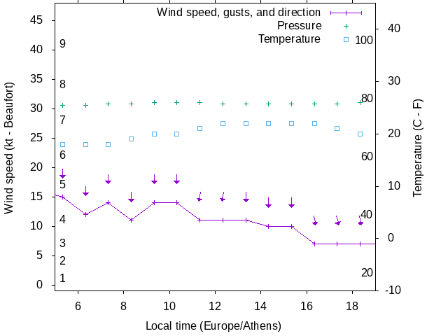 Dawn after 5:00; dusk before 19:00 local time (Europe/Athens).