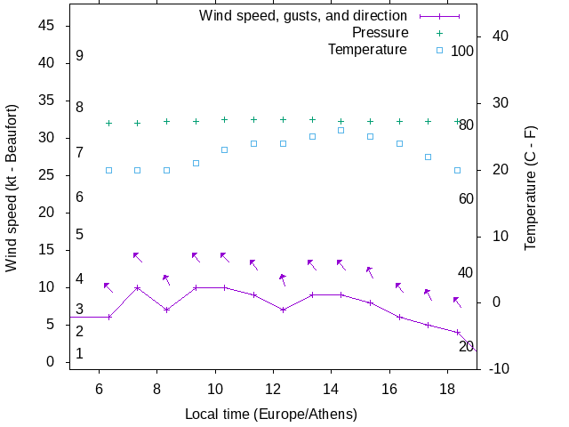 Dawn after 5:00; dusk before 19:00 local time (Europe/Athens).