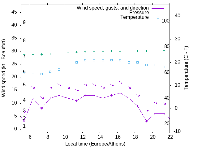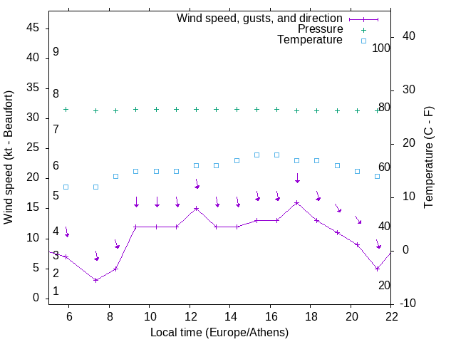 Dawn after 5:00; dusk before 22:00 local time (Europe/Athens).