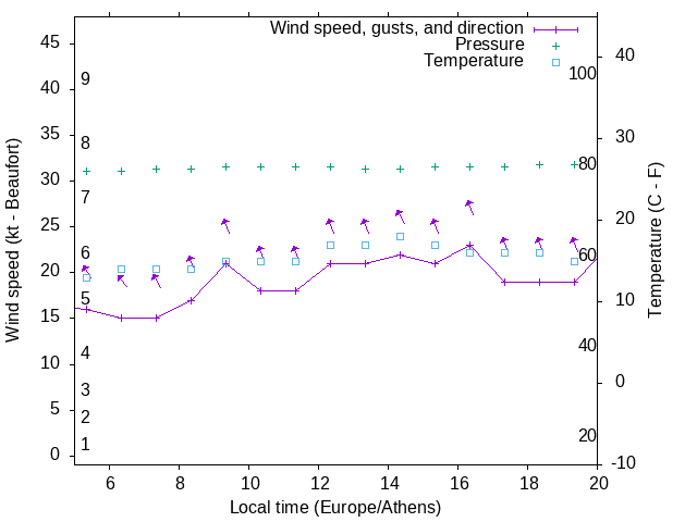 Dawn after 5:00; dusk before 20:00 local time (Europe/Athens).
