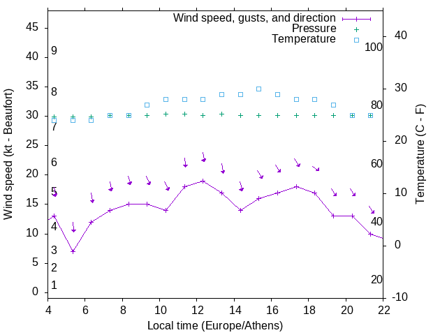 Dawn after 4:00; dusk before 22:00 local time (Europe/Athens).