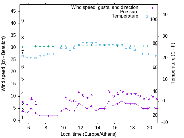 Dawn after 5:00; dusk before 21:00 local time (Europe/Athens).