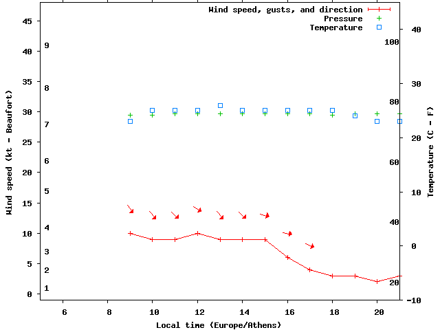 Dawn after 5:00; dusk before 21:00 local time (Europe/Athens).