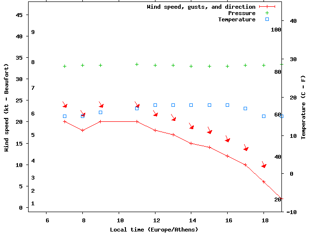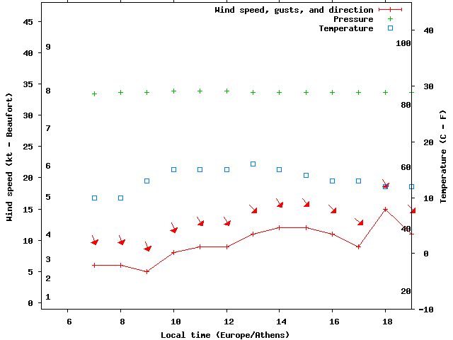 Dawn after 5:00; dusk before 19:00 local time (Europe/Athens).