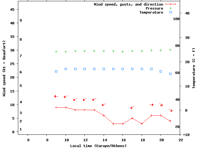 Dawn after 5:00; dusk before 22:00 local time (Europe/Athens).